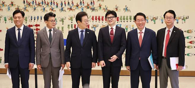 조 대표도 품평에 가세했다. 김씨가 “처음으로 한 대표를 개원하는 날 직접 만나시지 않았나. 한 대표가 (키가) 180(cm)이거든”이라고 했다. 지난 2일 여야 대표들이 우원식 국회의장을 함께 예방했던 것을 언급한 것이다.