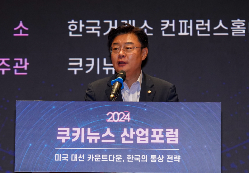 김성원 의원은 10일 오후 서울 여의도 한국거래소 컨퍼런스홀에서 ‘미국 대선 카운트다운, 한국의 통상 전략’을 주제로 열린 2024 쿠키뉴스 산업포럼에서 축사를 통해 이 같이 밝혔다.
