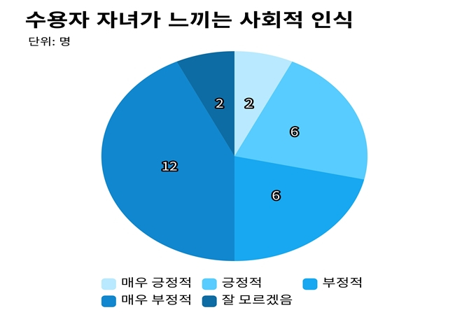 쿠키뉴스는 지난 5월9일부터 27일까지 아동복지실천회 세움과 세진회에 의뢰해 수용자 자녀 28명을 대상으로 설문조사를 진행했다. 64%(18명)의 수용자 자녀가 정서적 연좌제가 남아있다고 밝혔다. 같은 비율의 수용자 자녀는 자신들에 대한 사회적 인식이 부정적이라고 응답하기도 했다.