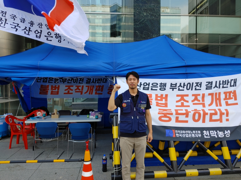이를 두고 산업은행 노조에서는 강하게 반발하며 천막투쟁에 돌입했다. 산업은행법 개정안이 국회에서 공회전되자 조직개편을 통해 우회적인 방법으로 불법 이전을 단행하고 있다는 것이다.