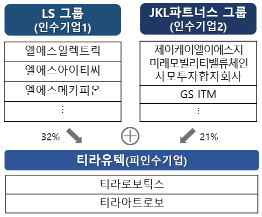 엘에스일렉트릭 등 LS 그룹 3개사는 JKL파트너스 그룹과 함께 티라유텍의 주식을 공동으로 취득하는 건이다. 공정위는 본 건 결합으로 스마트팩토리 소프트웨어 솔루션 시장, 산업용 로봇 제조업 시장 등 2개 시장에서 중첩이 일어날 수 있다고 봤다.