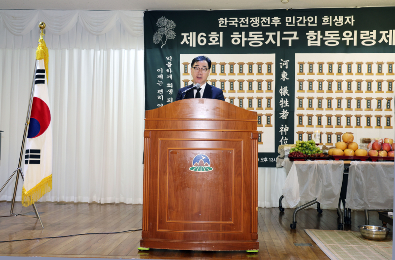 하승철 군수는 추도사를 통해 "한국전쟁 전후로 무고하게 희생된 하동군 희생자 영령들께 깊은 애도를 표한다"며, "앞으로도 하동군은 민간인 학살의 올바른 진상을 알려 희생자와 유족들의 명예 회복 및 유가족들의 오랜 고통과 한을 푸는 것에 최선을 다하겠다"고 말했다.