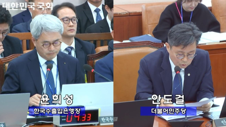 국민의힘 박성훈 의원은 윤 행장을 향해 ‘수출입은행이 체코 원전 체코 수주를 위해 역마진으로 손해를 보면서까지 금융지원을 하고 있다’는 의혹에 대해 설명을 요구했다.