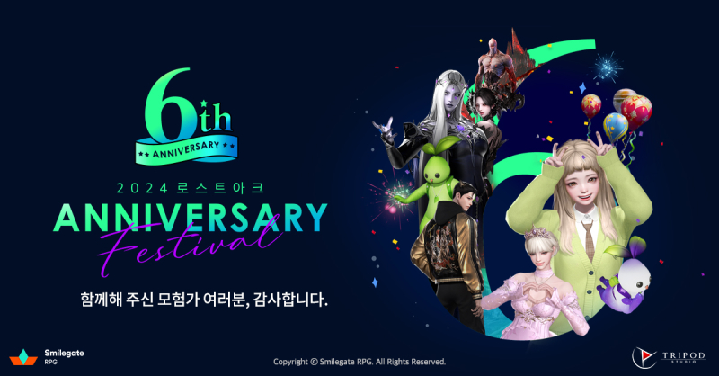 지원길 스마일게이트 RPG 대표는 “6년이라는 긴 시간 동안 함께 해주신 모험가 여러분이 있었기에 지금의 로스트아크가 있을 수 있었다. 말로 다 할 수 없을 만큼 진심으로 감사의 마음을 전하며 로스트아크가 마련한 감사 이벤트를 즐겁게 즐겨 주셨으면 좋겠다”는 소감을 전했다. 로스트아크에 관한 자세한 정보는 로스트아크 공식 홈페이지를 통해 확인할 수 있다.