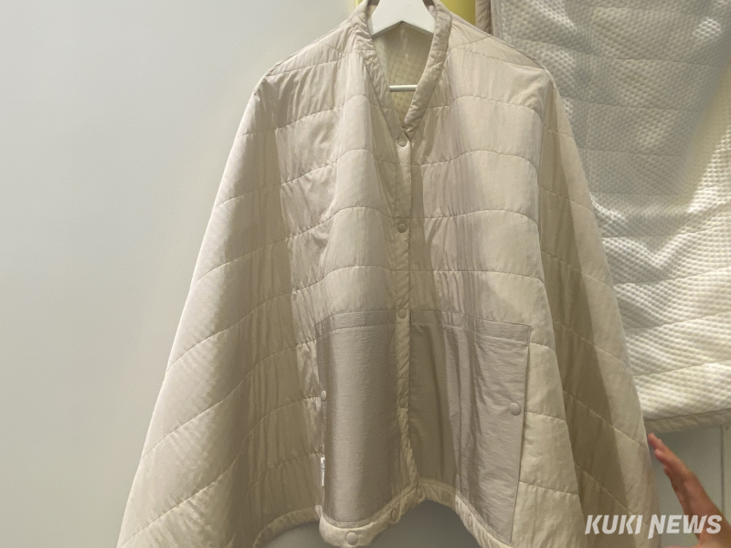 매장에 들어서니 친환경 소재를 이용한 매트리스를 활용해 꾸민 ‘드리머 아일랜드’가 눈에 띄었다. 바쁜 일상 속 나만의 쉼터를 원하는 사람들을 위한 공간이다. 재단하고 남은 자투리 매트리스를 활용해 섬처럼 구현한 설치물을 중심으로 래코드와 함께 제작한 블랭킷 베스트, 쿠션, 룸 슬리퍼와 파우치 등 휴식을 연상하는 아이템을 전시했다.