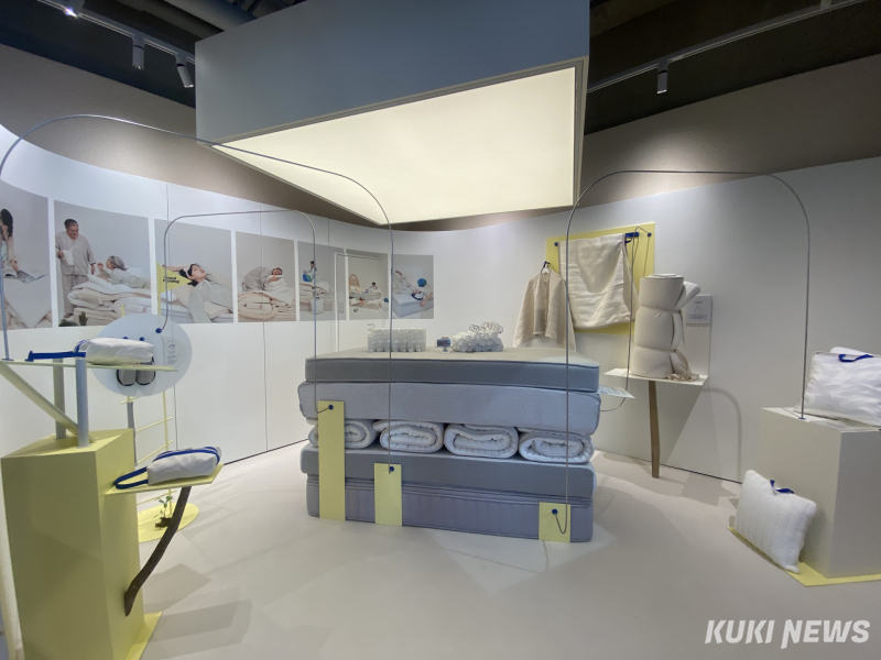 이번 전시는 코오롱FnC에서 운영하는 친환경 의류 브랜드 ‘래코드(RE;CODE)’와 협업했다. 슬로우베드 관계자는 “업사이클링을 실천하는 래코드와 환경 보호 및 지속 가능한 라이프스타일에 대한 공감대를 바탕으로 매트리스를 생산하는 과정에서 발생하는 폐자재를 홈웨어와 라이프스타일 아이템으로 재탄생시키는 협업을 진행했다”며 “수면과 패션의 가치를 넘어 자연순환이라는 즐거움을 표현하고 싶었다”고 설명했다.