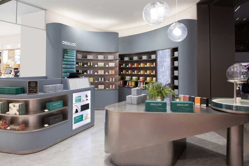 앞서 9월 오픈한 오설록 인천공항점의 인테리어는 담청색의 베이스 컬러에 금속 소재를 활용해 한국적인 감성을 현대적으로 풀어냈다.