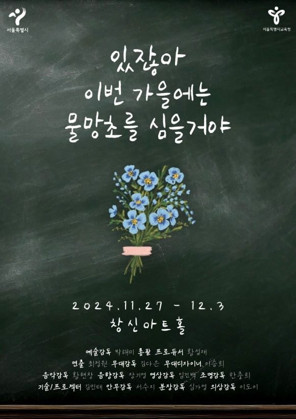 시는 서울 종로구 창신아트홀에서 수능을 마친 고등학교 3학년 학생을 대상으로 ‘있잖아, 이번 가을에는 물망초를 심을 거야’를 공연한다고 21일 밝혔다. 시와 교육청이 협력해 제작한 마약 예방 창작 뮤지컬이다.