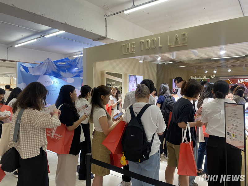 생활용품을 주로 판매하는 다이소에서도 ‘가성비 뷰티템’이 주목받으며 화장품 코너를 찾는 손님이 늘었다. 다이소는 2021년부터 화장품 사업에 진출, 세를 점점 불렸다. 전년 동기 대비 뷰티 매출 신장률을 살펴보면 2022년 50%, 2023년 85%, 2024년 상반기 기준 223%로 지속 상승했다.