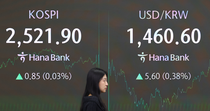 9일 오후 서울 중구 하나은행 본점 딜링룸 전경. 연합뉴스