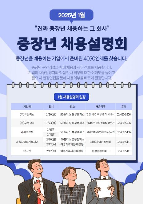 강명 서울시50플러스재단 대표는 “초고령화 시대에 중장년층의 경제적 안정은 사회 전체의 과제”라며 “올해는 다양한 일자리 사업을 통해 중장년 세대가 빠르게 취업 기회를 찾고, 새로운 도전에 나설 수 있도록 적극 지원하겠다”고 말했다.