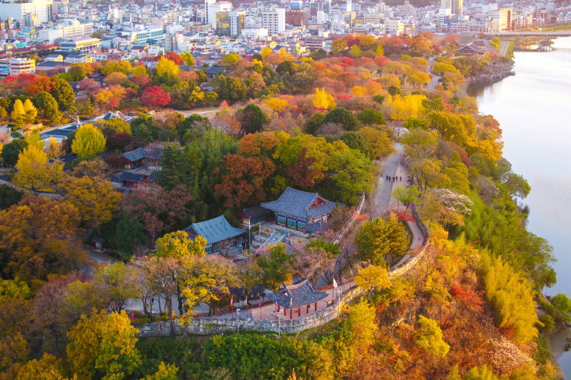 진주여행의 대표 명소인 진주성은 임진왜란 3대 대첩 중 하나인 진주대첩의 역사를 간직한 곳이다. 고즈넉한 성곽길, 웅장한 누각, 역사가 깃든 문화재 등 다양한 볼거리가 가득하며, 도심을 가로지르는 남강 변에 위치하여 뛰어난 조망경관과 접근성을 자랑한다.