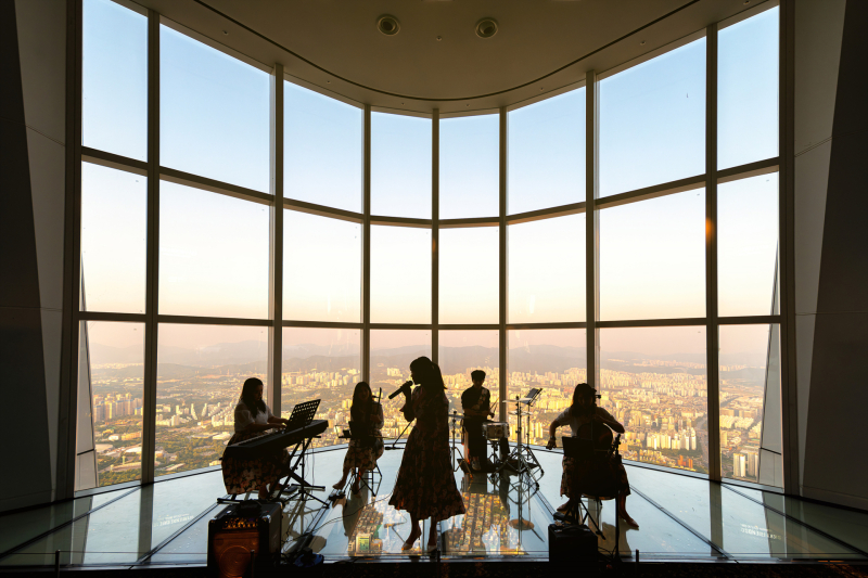롯데월드타워 전망대 서울스카이에서는 퓨전 국악 버스킹이 펼쳐지며 즐거움을 더한다. 오는 29일과 30일 오후 6시, 소리꾼과 해금 연주자의 조합이 돋보이는 그룹 ‘낭창낭창 흥키타카’와 클래식 악기와 드럼을 접목해 국악의 대중화를 꾀하는 그룹 ‘라라 앙상블’이 각각 하루씩 무대를 펼친다.
