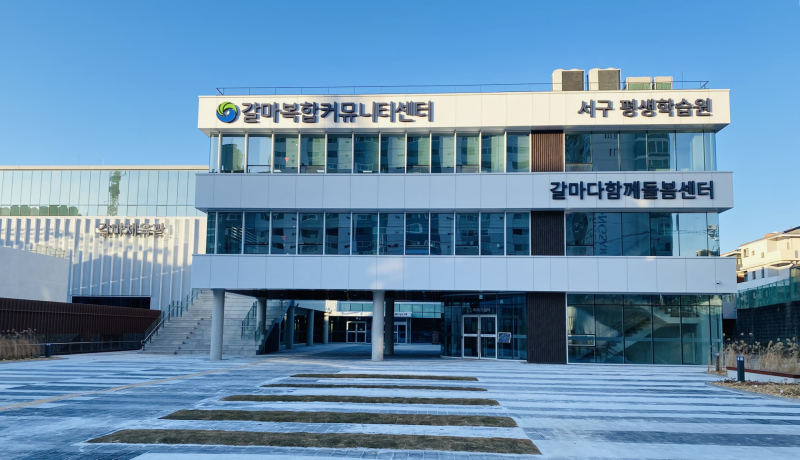 갈마복합커뮤니티세터는 서구의 첫 번째 복합커뮤니티센터로 옛 서구청사 부지에 지하 1층부터 지상 4층까지 서구 평생학습관, 갈마체육관, 갈마다함께돌봄센터, 공영주차장이 한 공간에 복합적으로 조성됐다.