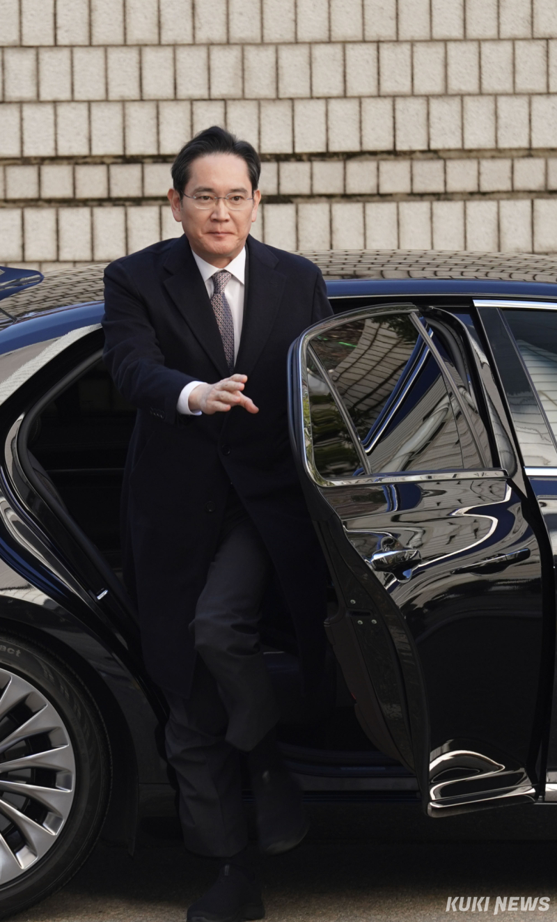 이재용 삼성전자 회장이 3일 오후 1시 40분쯤 서울 서초구 서울고등법원에 도착했다.