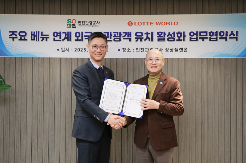 롯데월드는 이날 인천시 중구에 위치한 ‘상상플랫폼’에서 인천관광공사와 함께 ‘주요 베뉴 연계 외국인 관광객 유치 활성화를 위한 업무협약’을 체결했다.