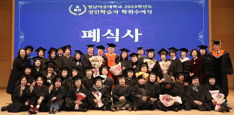 영남이공대 이재용 총장은 “이제 관련 분야의 학위를 취득한 전문가로 국가와 지역사회 발전에 기여해 주시길 바란다”며 “성인학습자의 역량을 키울 수 있는 최고의 교육환경으로 성인학습자의 적극적인 사회활동 지원에 최선을 다하겠다”고 말했다.