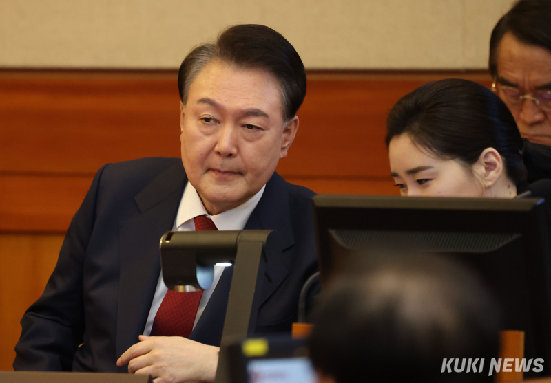 윤석열 대통령이 13일 서울 종로구 헌법재판소에서 열리는 탄핵심판 8차 변론에 출석했다.