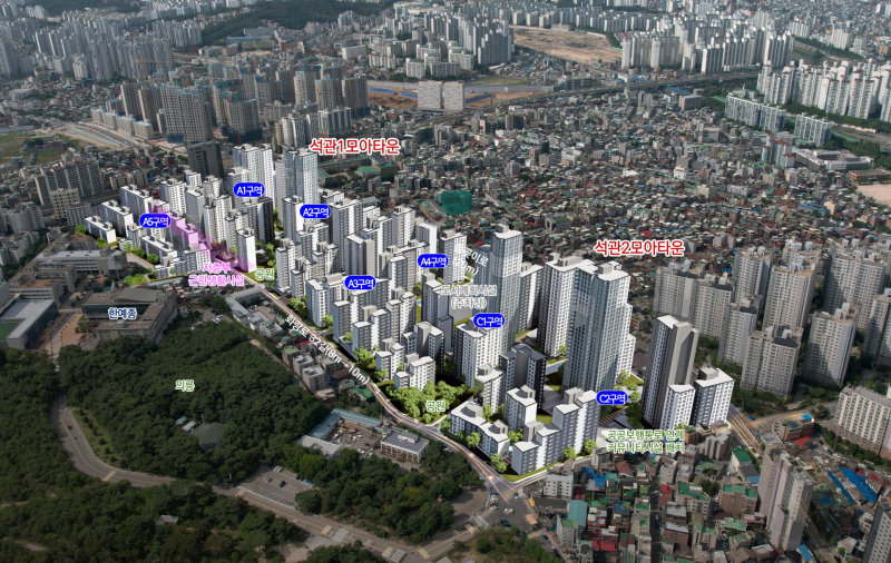 석관동 334-69번지 일대에는 주택 1703세대(임대 345세대 포함)가, 석관동 261-22번지 일대에는 총 1183세대(임대 195세대 포함)가 들어선다.
