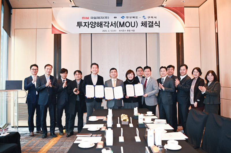 경북 구미시는 12일 포시즌스 호텔 서울에서 SM국일제지와 경북도·구미시 간 투자양해각서(MOU)를 체결했다.