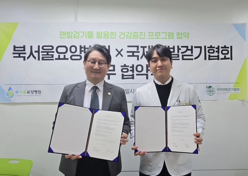 국제맨발걷기협회(회장 김도남)는 북서울요양병원(병원장 김우성)과 13일 북서울요양병원에서 맨발걷기를 활용한 건강 증진 프로그램 공동 개발 및 운영을 위한 업무협약(MOU)을 체결했다고 15일 밝혔다.