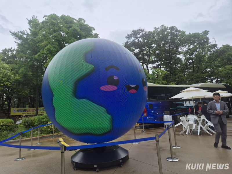 양천공원 중심부에 들어서자 지름 3m, 높이 3.5m의 대형 LED 지구본이 눈길을 끌었다. 이 지구본은 박람회의 주제와 메시지를 영상으로 전하며, 해수면 상승·빙하 감소 등 기후변화 문제를 직관적으로 보여줬다.