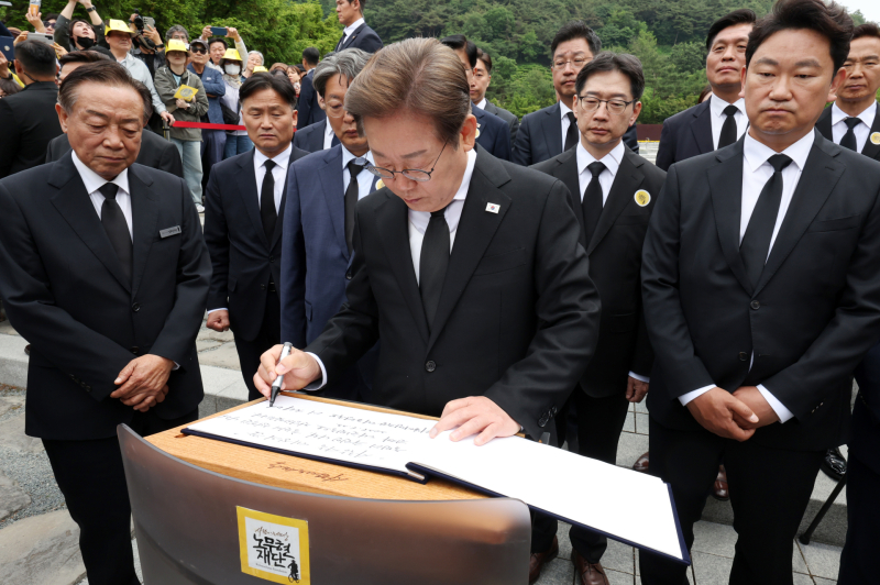고(故) 노무현 전 대통령 서거 16주기인 23일 이재명 더불어민주당 대선 후보가 김해 봉하마을을 찾아 '노무현 정신'을 계승하겠다는 의지를 다졌다.