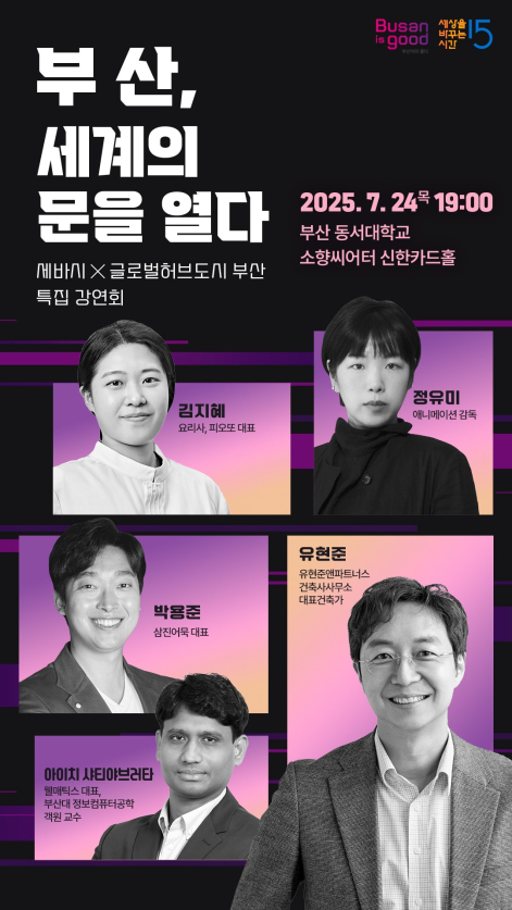 첫 번째 연사로는 대중적으로도 친숙한 건축가 유현준 교수가 나선다. 유 교수는 도시공간의 창의적 재해석과 '사람이 머물고 싶은 도시'의 조건을 부산만의 시각으로 풀어내며 세계적 도시로 나아가기 위한 부산의 공간적 잠재력을 제시한다.