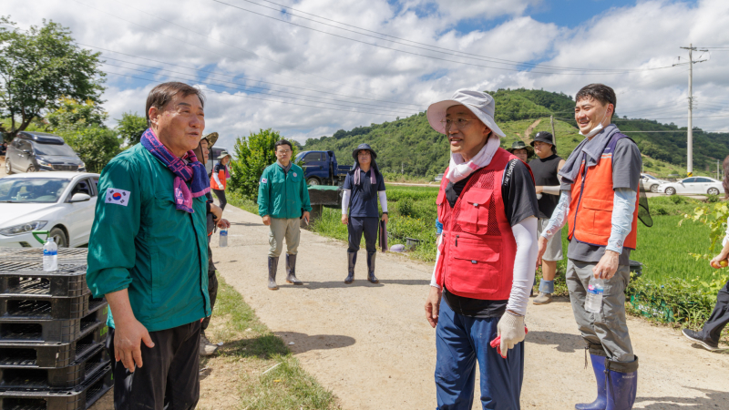 윤재옥 의원과 정희용 의원은 합천 삼가면 일대를 방문go 집중호우로 침수피해를 입은 농가 주변의 토사와 쓰레기를 수거하고 정리하는 등 복구작업에 참여했다.
