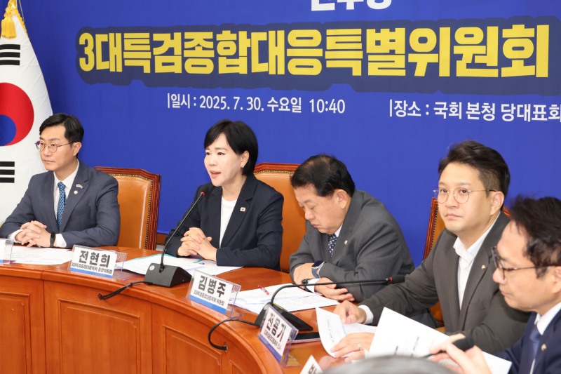 더불어민주당은 윤석열 전 대통령 부부를 둘러싼 의혹을 수사하는 3대 특검(내란·김건희·순직해병 특검)을 지원하기 위한 ‘3대특검 종합대응특별위원회’를 출범시켰다.