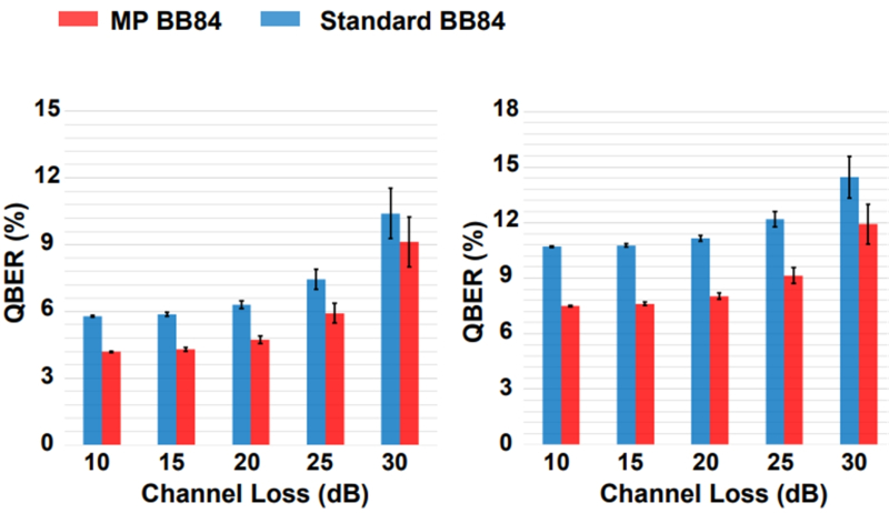 실험 결과 측정보호(MP) 기반 QKD 시스템은 전송된 양자비트 오류율(QBER)최대 허용치를 기존 대비 20.7% 높였다.