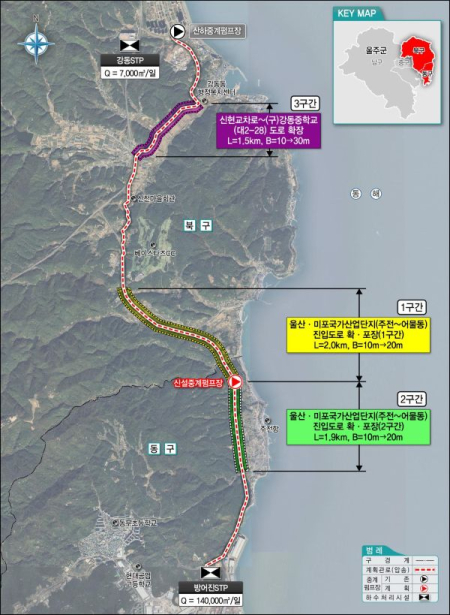 31일 울산시에 따르면 강동과 방어진하수처리시설 간 연계관로 설치를 위해 올해 4월 기본 및 실시설계 용역을 착수했다. 2028년 12월 준공을 목표로 공사를 추진한다.