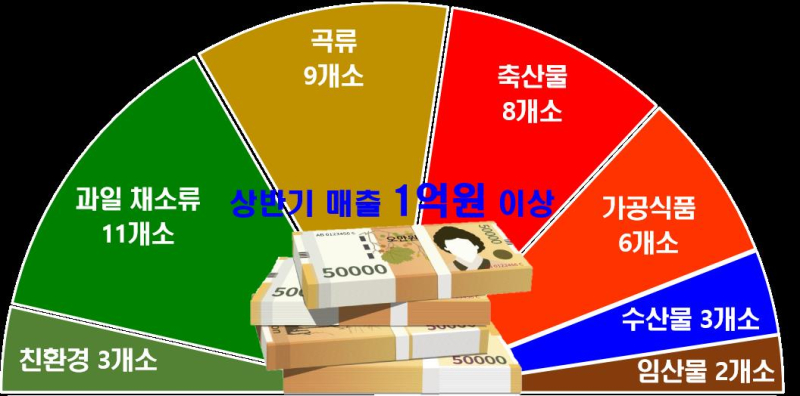 또 영주풍기사과(5억 4000만원), 한우 전문 승혜축산(5억 4000만원), 닭갈비 전문 여물게(4억 1000만원), 영주축협(3억 7000만원), 어간장 전문 더동쪽바다가는길(3억 7000만원) 등도 매출액 상위를 기록했다.