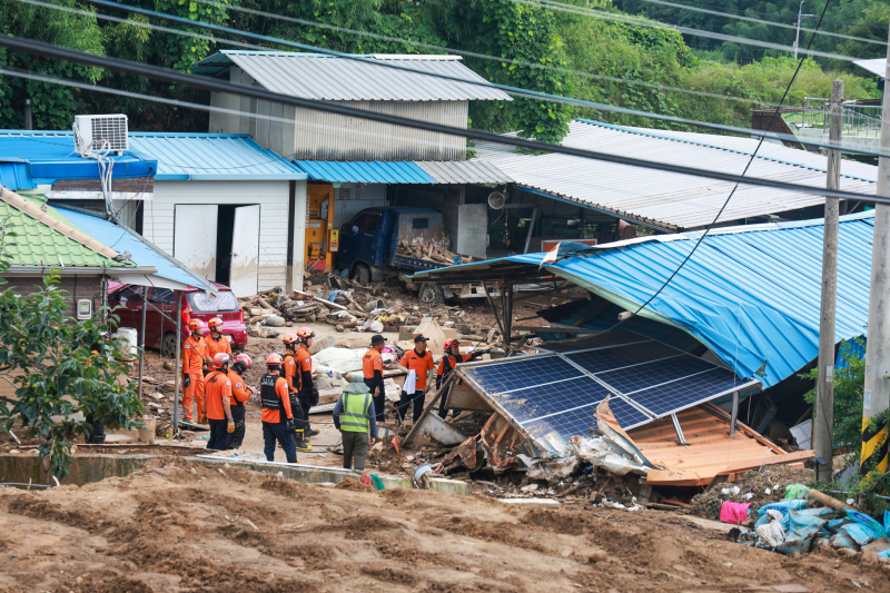 소방 인력들이 집중호우로 인한 실종자를 수색하고 있다
