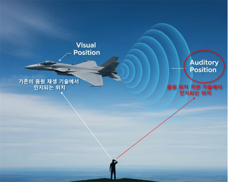 이 기술은 전투기처럼 빠르게 이동하거나 천둥 번개처럼 먼 거리에서 발생한 소리가 실제로 보이는 위치보다 약간 지연돼 들리는 현상을 실제와 같이 정밀하게 구현하는 게 핵심이다.