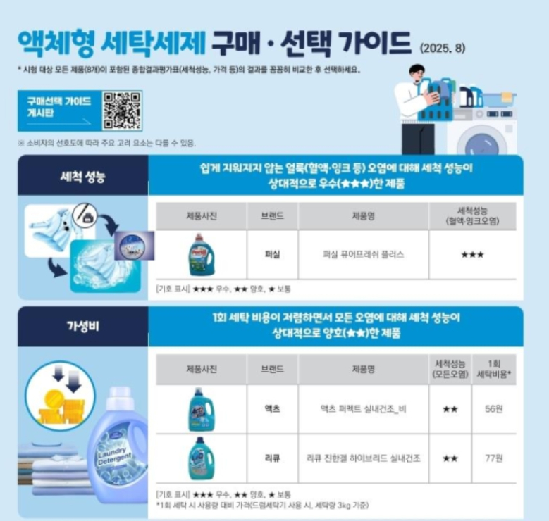 시중에 판매 중인 액체형 세탁세제 제품들이 유해 물질 관련 기준에 적합한 것으로 확인됐다. 다만 기름·단백질 및 혈액·잉크 오염에 대한 세척 성능은 제품별로 차이가 있었다.