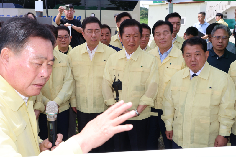 한 수해 주민이 “아이들이 책도, 가방도 없이 맨몸으로 학교에 다니고 있다”고 호소하자, 정 대표는 김 군수에게 “군에서 예산 있으면 당장 오늘이라도 지원해 줬으면 좋겠다”고 주문했다.