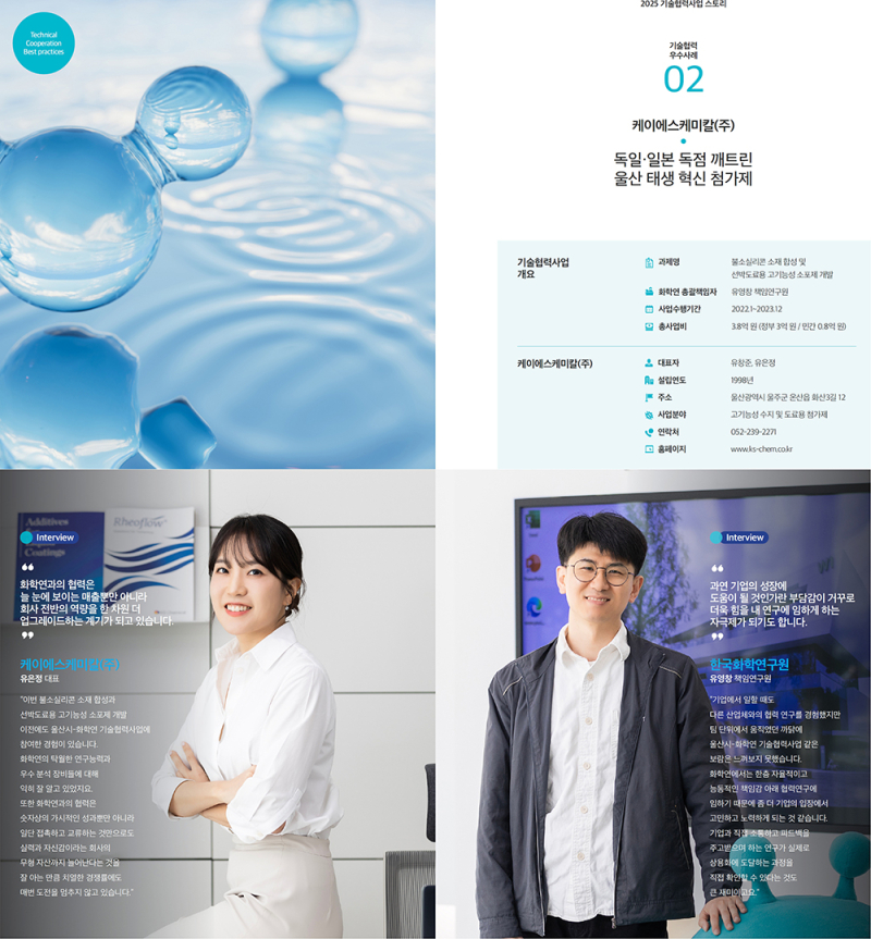 이영국 화학연 원장은 “울산화학산업이 스페셜티 화학제품의 기술 경쟁력을 바탕으로 당면 위기를 극복할할 수 있도록 울산과 협력을 통해 지원을 계속 이어 나가겠다”며 “이번 사례집이 지원이 필요한 지역기업에 성공모델로 인식될 수 있도록 많은 홍보가 이뤄지길 바란다”고 기대를 밝혔다.