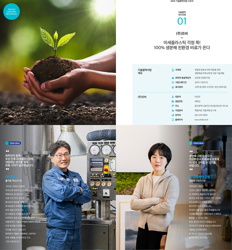 대표 성공사례로 복합비료 제조회사 ㈜조비는 2021년도 사업에 참여, 기존 석유계 난분해성 피복비료를 대체하는 생분해성 바이오 우레탄 피복비료 제품 개발에 성공했다.