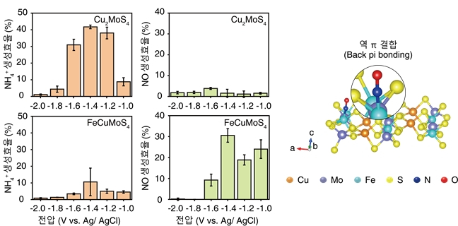 이어 전기화학 실험과 컴퓨터 시뮬레이션을 통해 철 촉매를 쓰면 일산화질소가 더 잘 만들어지고, 철이 없는 촉매를 쓰면 암모니아가 더 잘 만들어지는 식으로 생성 비율을 제어한다는 사실을 규명했다.