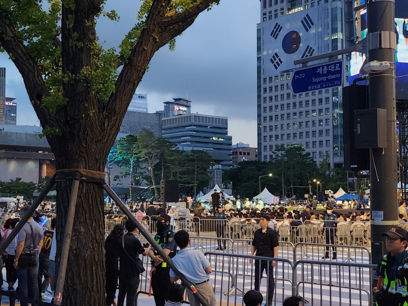 15일 오후 8시에 진행되는 이재명 대통령의 ‘국민임명식’을 관람하기 위해 많은 시민들이 광화문 광장으로 몰려들었다.