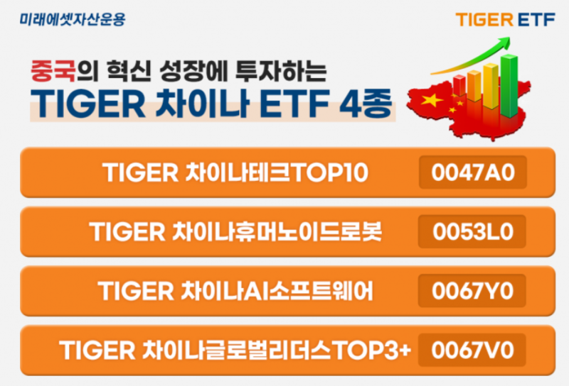 △TIGER 차이나휴머노이드로봇 역시 산업용 로봇 기업을 배제한 퓨어 차이나 휴머노이드 ETF로 차별화를 꾀하면서 주목받고 있다. 이 외에도 △TIGER 차이나AI소프트웨어 △TIGER 차이나글로벌리더스TOP3+ 등은 중국 테크 기업 성장의 수혜를 누릴 수 있을 것으로 기대된다.