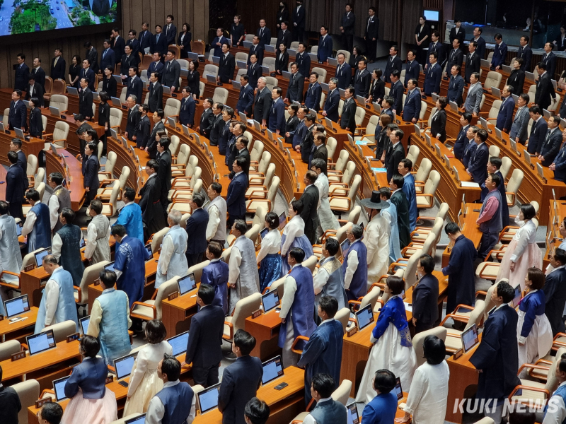민주당 의원들은 이날 본회의 개회식에 맞춰 한복을 입고 국회에 출석했다. 이는 앞서 백혜련 민주당 의원이 제시하고 우원식 국회의장이 호응한 데 따른 것이다.