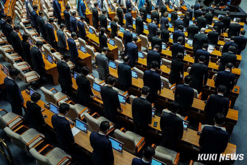 국민의힘이 정기국회 개회식에 검은색 상복과 ‘근조 의회 민주주의’ 리본을 착용하고 참석했다. 야당은 이재명 정권의 의회 민주주의 말살과 독재 정치에 맞선다는 취지라고 밝혔다.