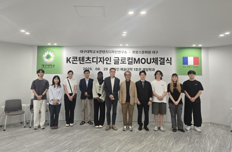 대구대학교 K콘텐츠디자인연구소와 주한 프랑스문화원 대구센터가 지난달 29일 경산캠퍼스 디자인예술대학에서 ‘K콘텐츠디자인 글로컬 협력’을 위한 업무협약(MOU)을 체결했다.