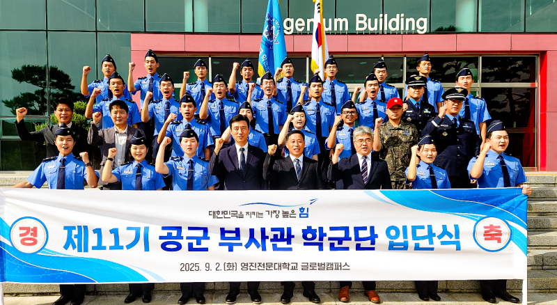 전국 유일의 공군 부사관학군단(RNTC)을 운영 중인 영진전문대학교가 제11기 입단식을 열고 항공정비 전문 간부 양성에 나섰다.