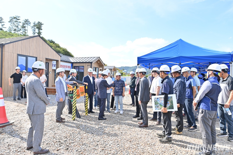 이 가운데 김 지사가 찾은 신풍지구는 산정리 일원에 85㎡형 단독주택 19세대와 13㎡ 규모 부속 창고 19개를 건립 중이다.
