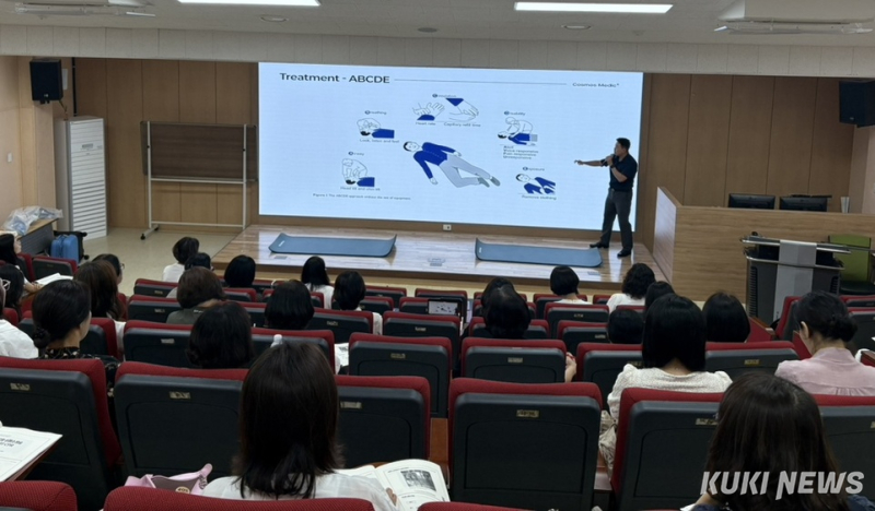특히 이번 연수는 현장에서 즉시 활용할 수 있는 실전 중심 훈련으로 운영됐다. 보건교사들은 모형과 장비를 활용해 심폐소생술(CPR)과 자동심장충격기(AED) 사용법을 반복 숙달했으며, 학교 현장에서 발생할 수 있는 심정지, 뇌출혈, 기도폐쇄, 외상 등 다양한 응급 상황에 대응하는 방법을 직접 체험했다. 이를 통해 ‘단 한 번의 신속한 대응이 평생의 기적이 될 수 있다’라는 사명감을 되새기는 시간이 됐다.