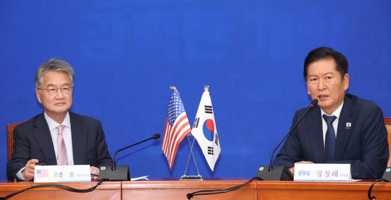 정 대표는 이날 오후 국회에서 조셉 윤 주한미국 대사대리를 접견했다. 이번 만남은 최근 있었던 한미정상회담 후속 조치 이행 방안 등을 논의하기 위해 마련됐다. 한미 동맹의 중요성을 재확인하고 양국 관계 발전을 위한 협력 의지를 강조할 것으로 보인다.
