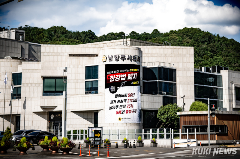 해당 현수막에는 △중첩규제 철폐와 한강법 폐지 △상수원보호구역 지정으로 인해 잃어버린 50년 △규제로 인한 지가손실액 217조원 △남양주 면적의 75%를 차지하는 8종의 중첩규제에 관한 내용을 담고 있다.